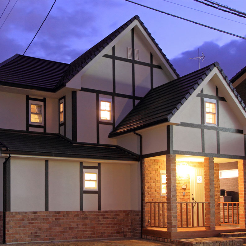 急勾配の屋根が美しい、ハーフティンバー様式。イギリスのお家をイメージした瀟洒な家です。